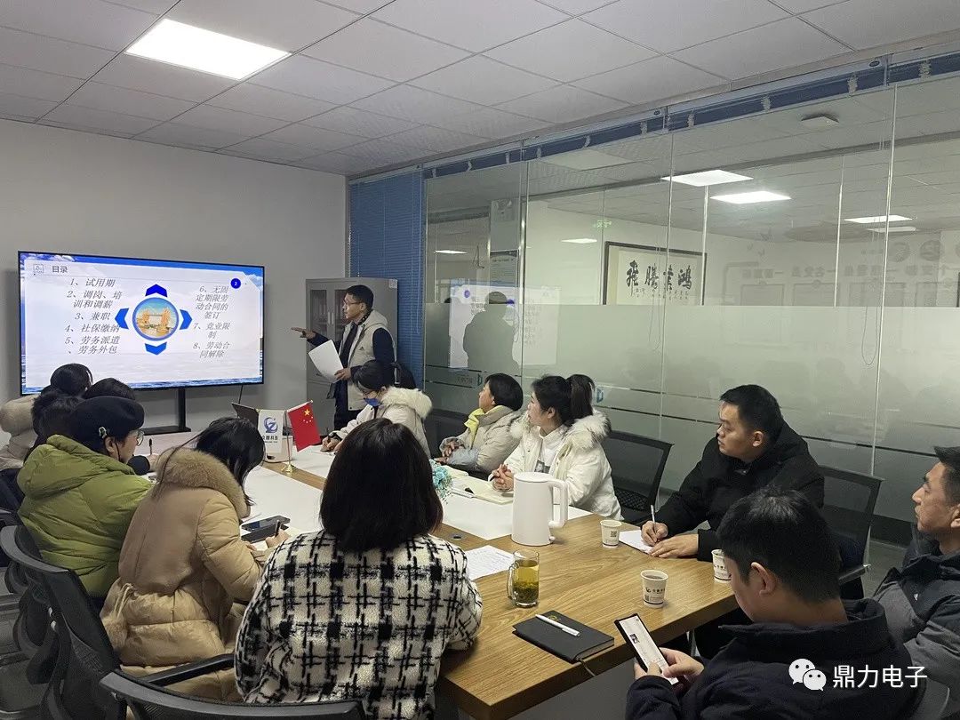 2021年12月24日,蚌埠鼎力電子科技有限公司邀請(qǐng)安徽大友昱達(dá)律師事務(wù)所楊寶根律師、許曉冬律師,為公司管理層進(jìn)行勞動(dòng)用工管控風(fēng)險(xiǎn)防范知識(shí)培訓(xùn)。